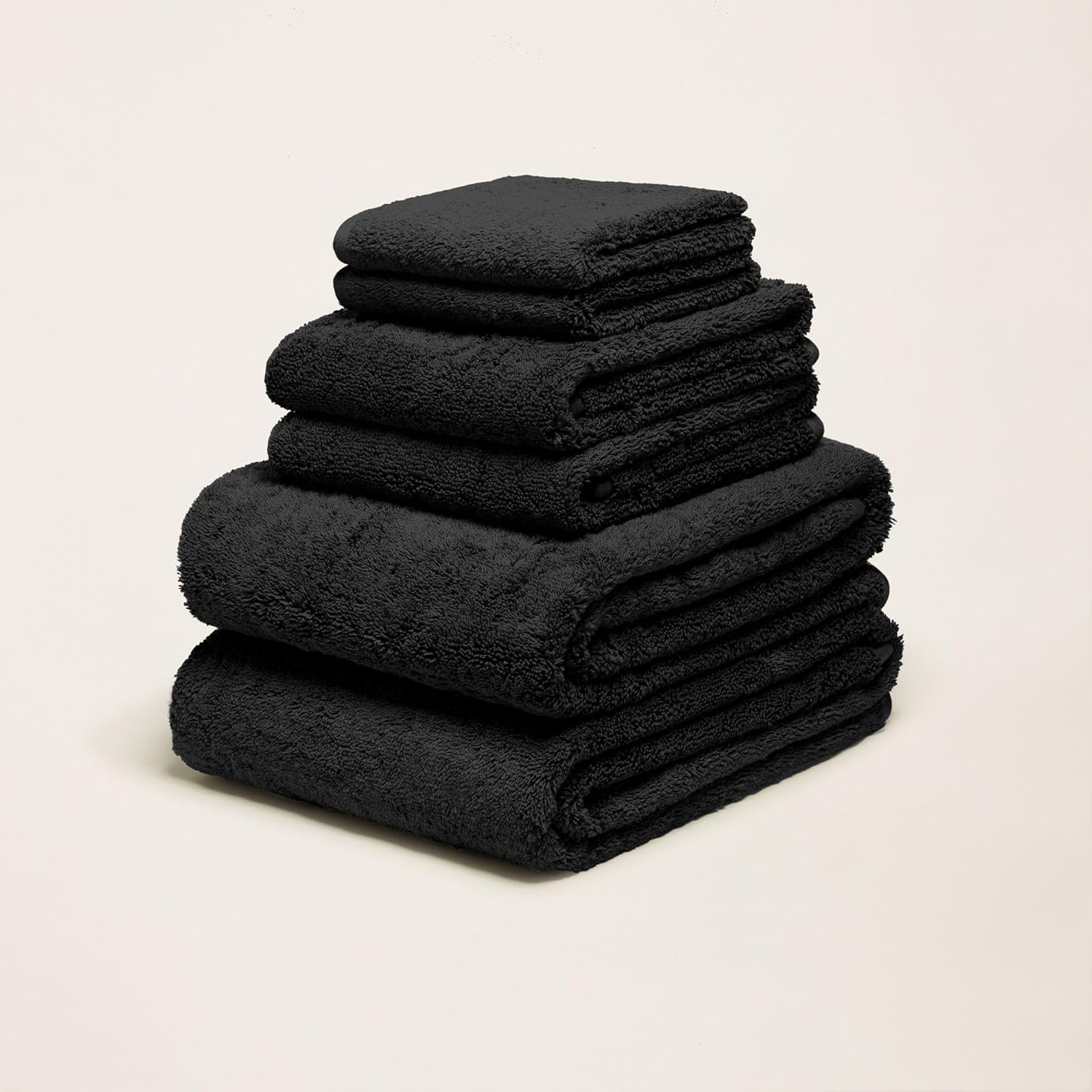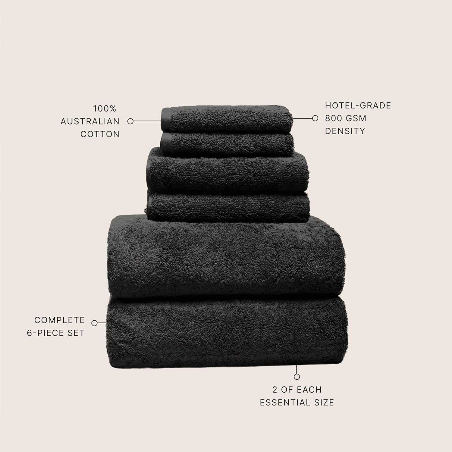 Italic Ultraplush 100% Australian Cotton Towels Standard 6 Piece Set, 2 Bath, 2 Hand, 2 Washcloths, 800GSM Lightweight, Highly Absorbent Quick Dry Soft Resort Grade Towels (Black)