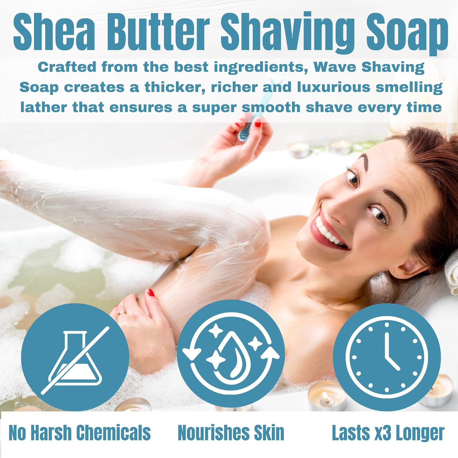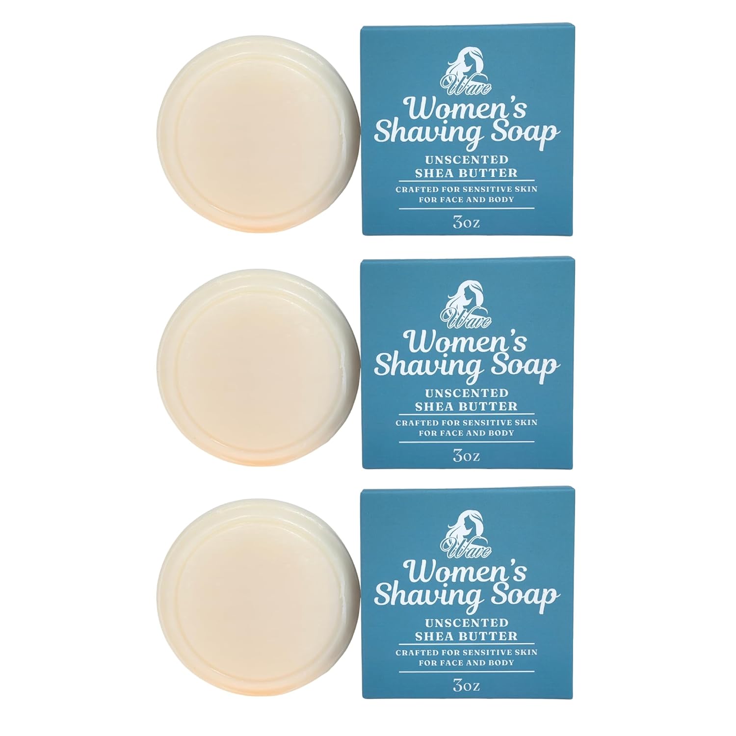 All Natural Shave Soap Set, Fragrance Free Shaving Soap with Shea Butter for Sensitive Skin (3 Pack) (Pack of 3, Womens Unscented)