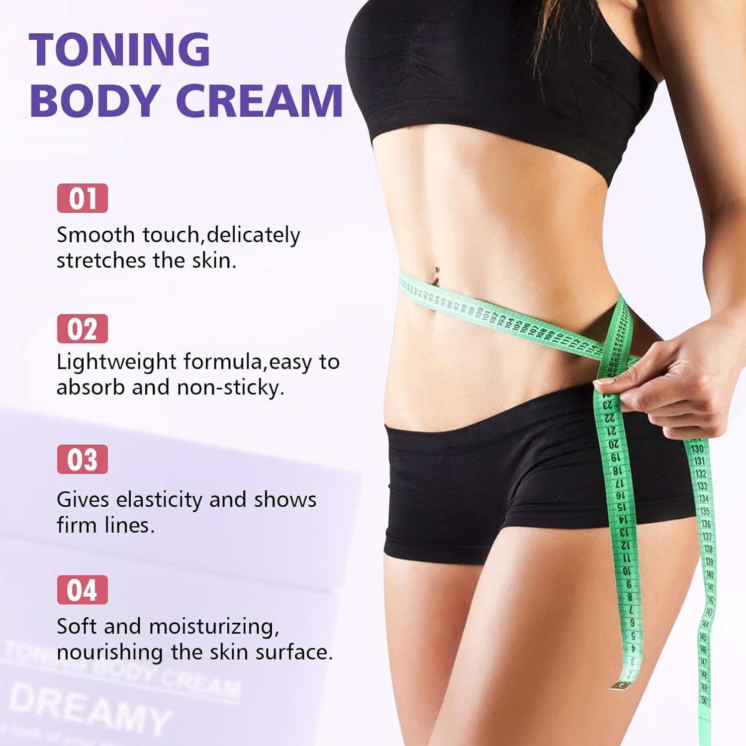- Firming Oil-in-Cream 2-in-1: Get Dreamy Cream combines the benefits of a body oil and cream. Its rich formula deeply hydrates while boosting skin elasticity, helping reduce sagging and enhancing natural contours. It's the ideal choice for daily shaping and long-term firming.
