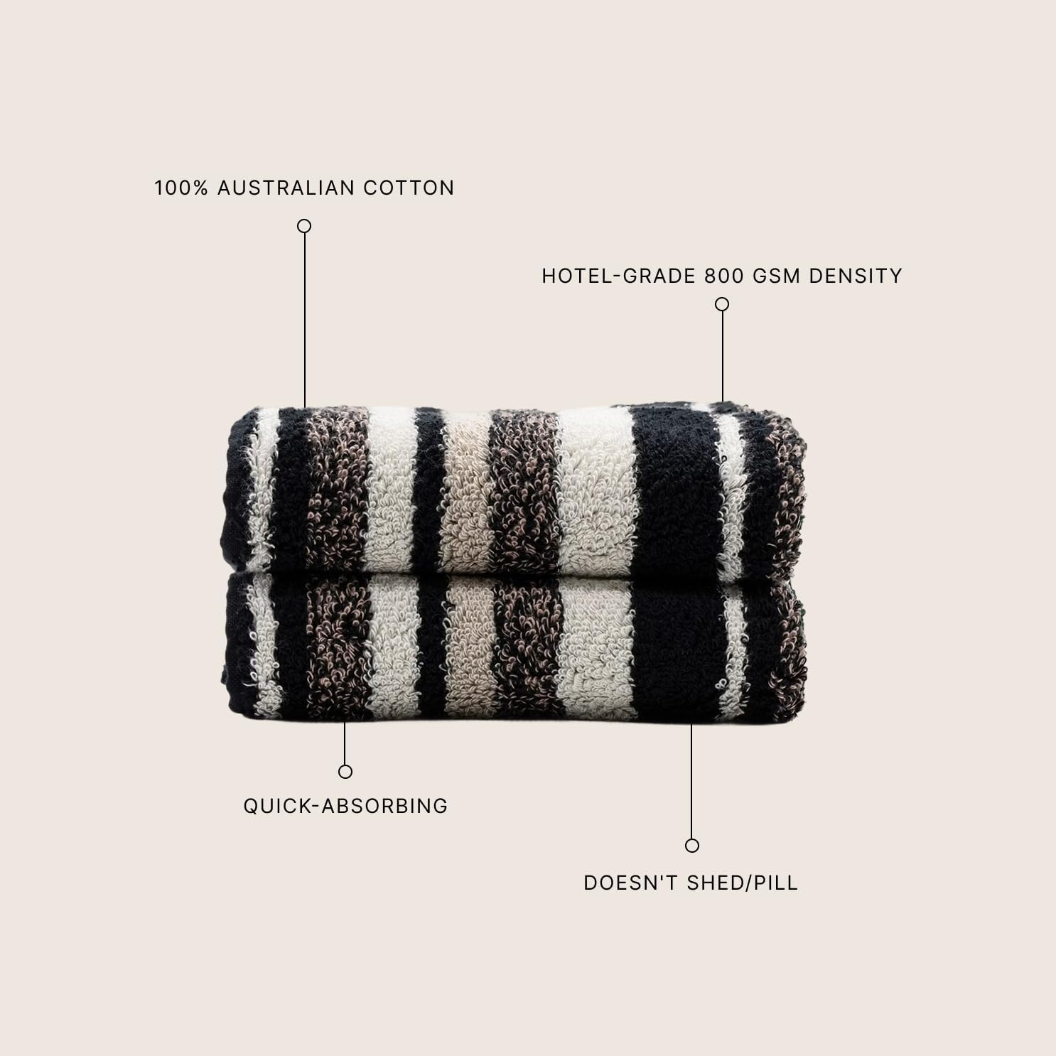 Italic Ultraplush 100% Australian Cotton Hand Towels - Set of 2 Luxury Hand Towels, Ultra Soft and Highly Absorbent 800GSM for Bathroom,Shower, Hotel, and Spa (Stripe Multi-Color)
