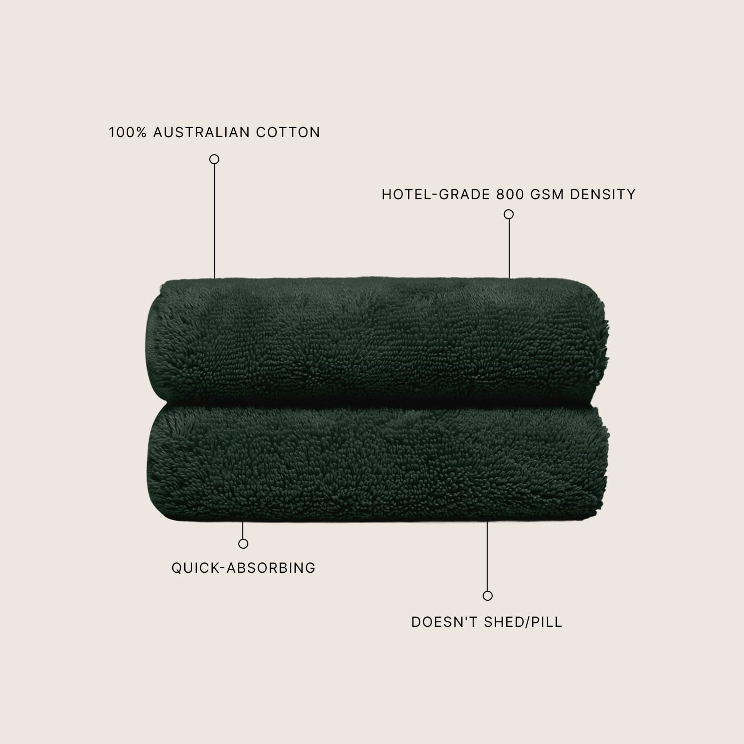Italic Ultraplush 100% Australian Cotton Washcloths - Set of 2 Luxury Plush Face Wash Cloths, Soft and Absorbent 800 GSM for Bathroom, Spa, Gym, Face and Body (Deep Forest)