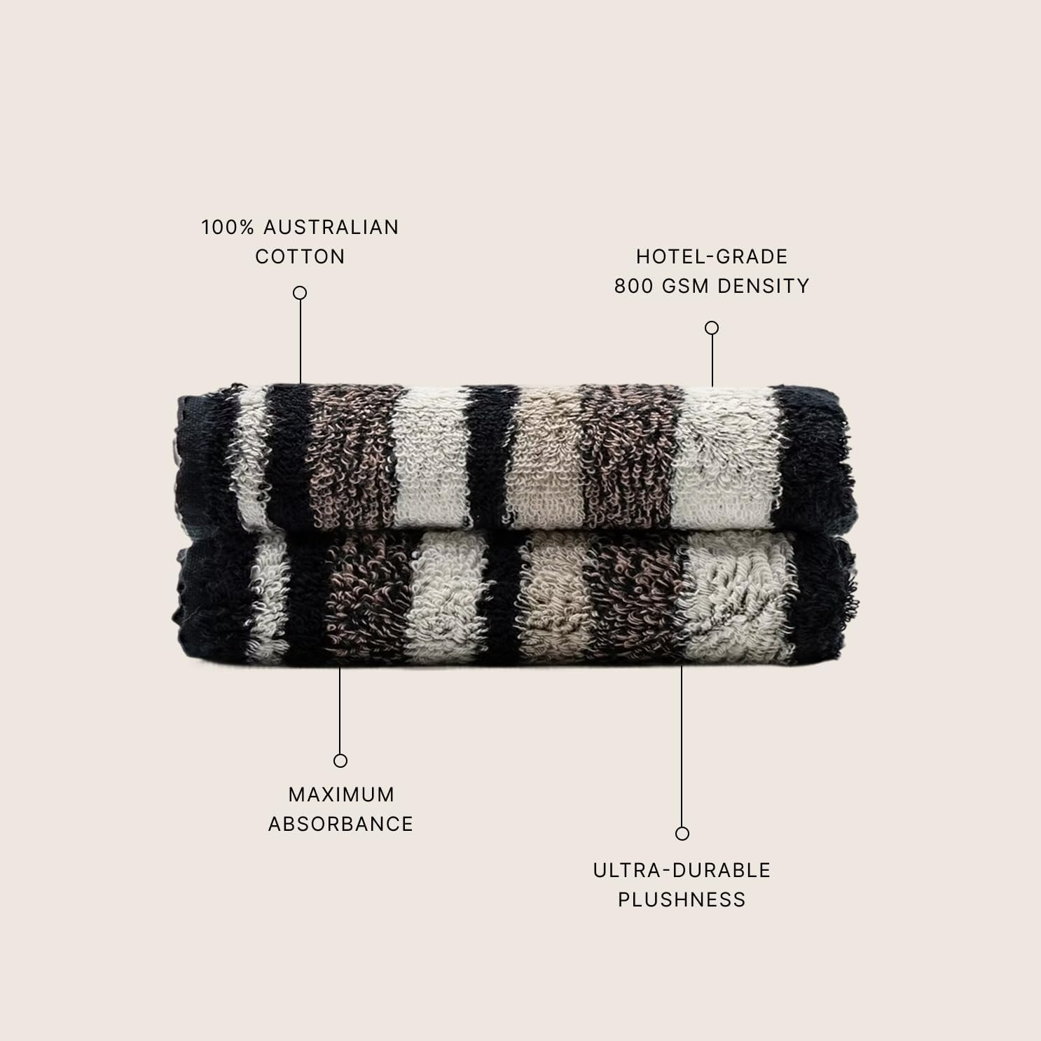 Italic Ultraplush 100% Australian Cotton Washcloths - Set of 2 Luxury Plush Face Wash Cloths, Soft and Absorbent 800 GSM for Bathroom, Spa, Gym, Face and Body (Stripe Multi Color)