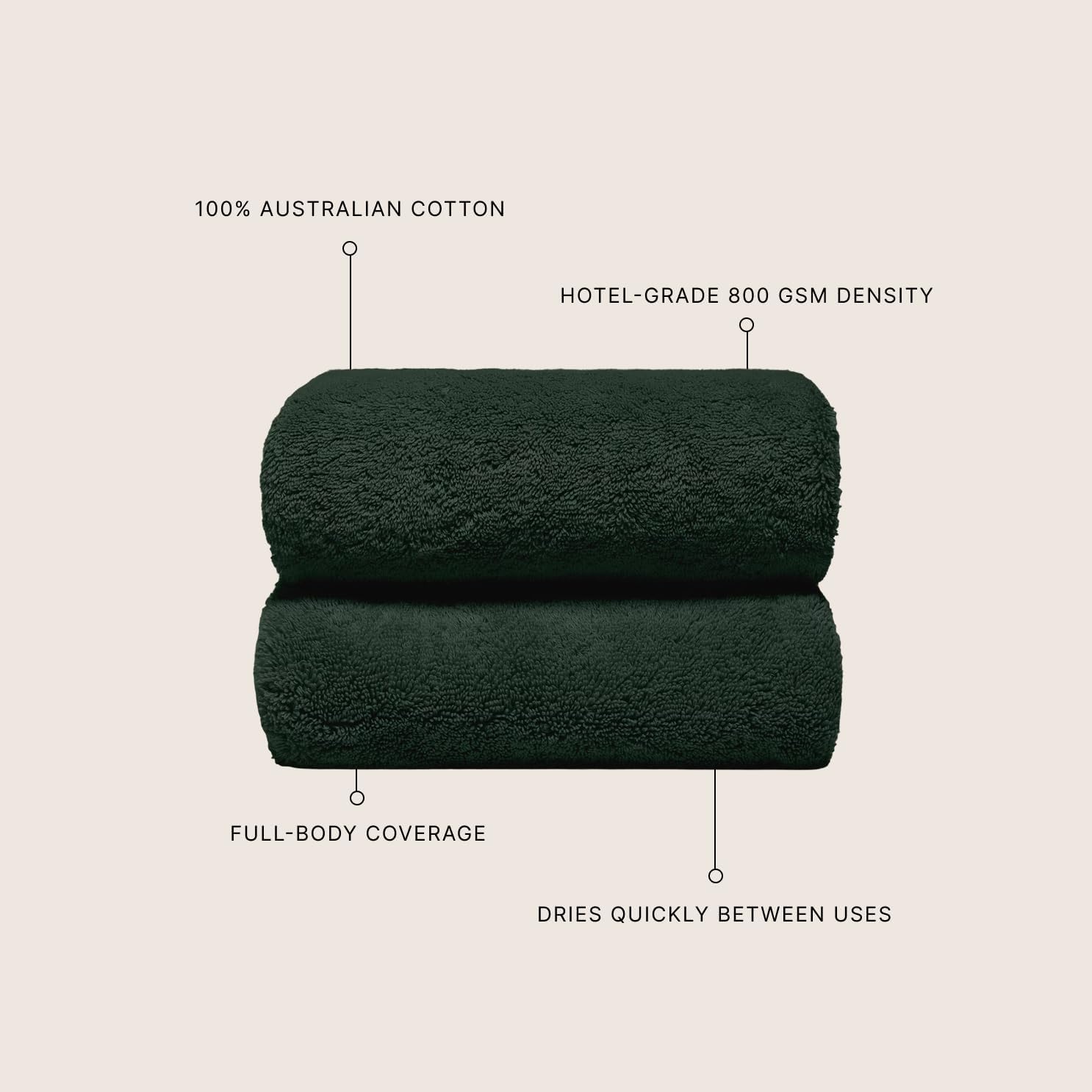 Italic Ultraplush 100% Australian Cotton Bath Sheets - Set of 2 Luxury Extra Large Heavy Duty Bath Sheets, 800GSM Plush and Absorbent Bath Sheets for Hotels, Bath & Spa (Deep Forest)