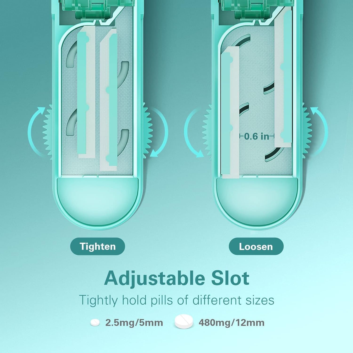 - ăAccurate Cuttingă: With 2 adjustable bars and anti-slip silicone strips, our pill cutters for small or large pills professional can cut pills accurately with crumbling