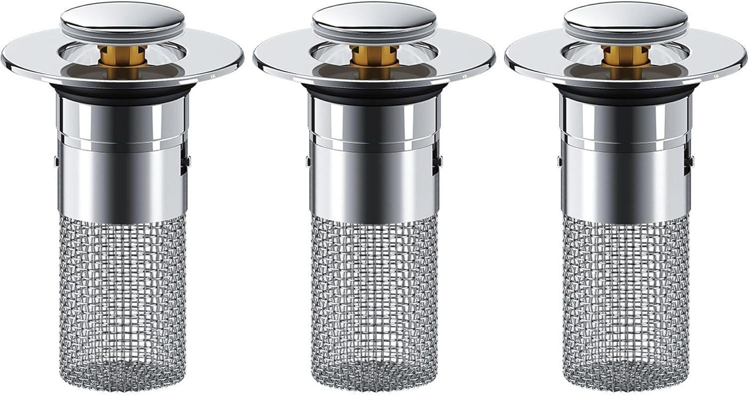 Saker Bathroom Sink Drain Strainer Hair Catcher (3 PCS), Pop-up Drain Filter with Removable Stainless Steel Filter Basket, Prevents Hair Clogs, Suitable for Bathroom Sink Stopper Replacement