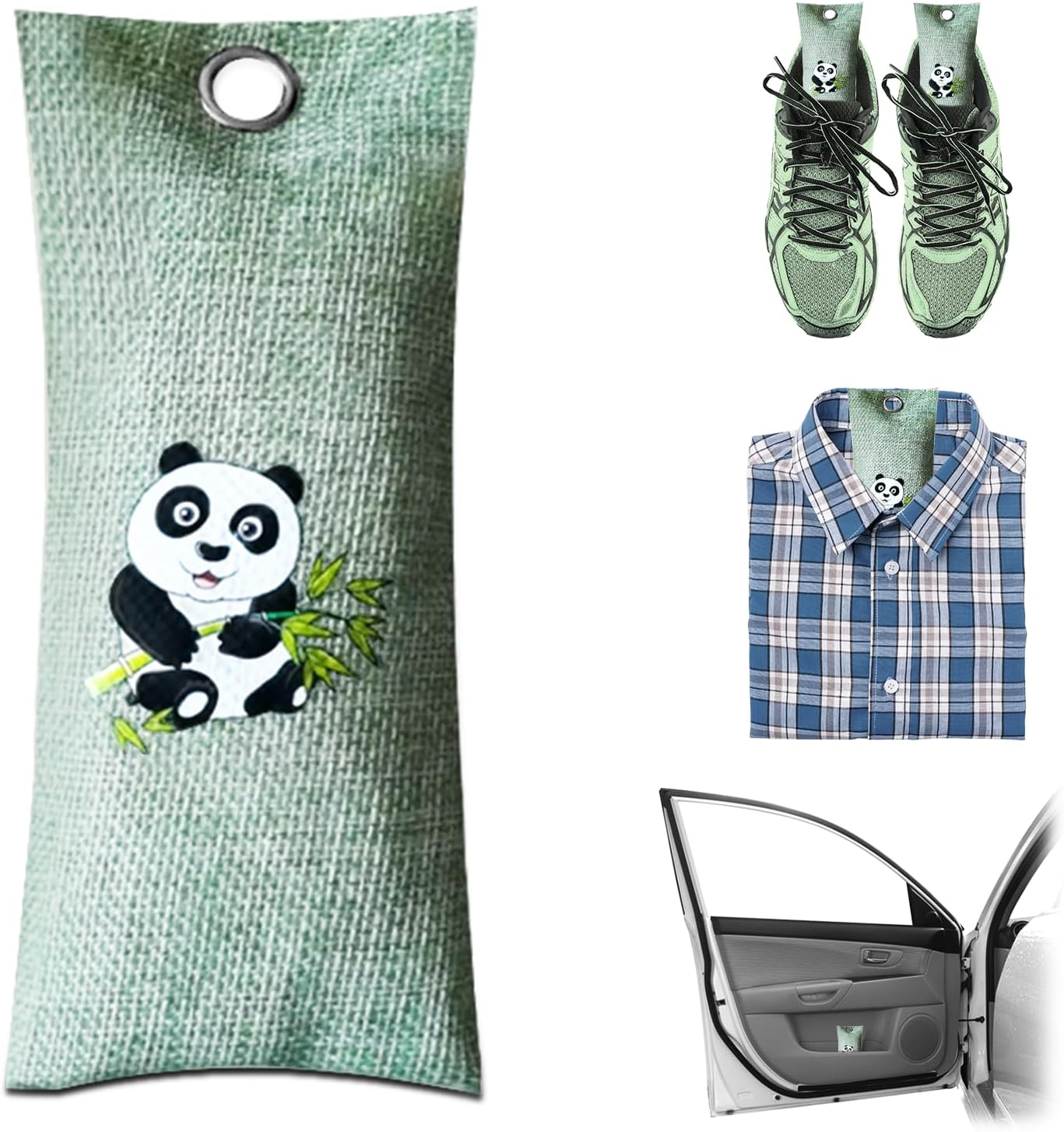 4 Pack charcoal odor absorber,Bamboo Charcoals Air Purifying Bag Charcoals Deodorizer Eliminator for Strong Odors in Car, Closet, Shoe, Basement (75G*4 Pack Panda, Unscented)
